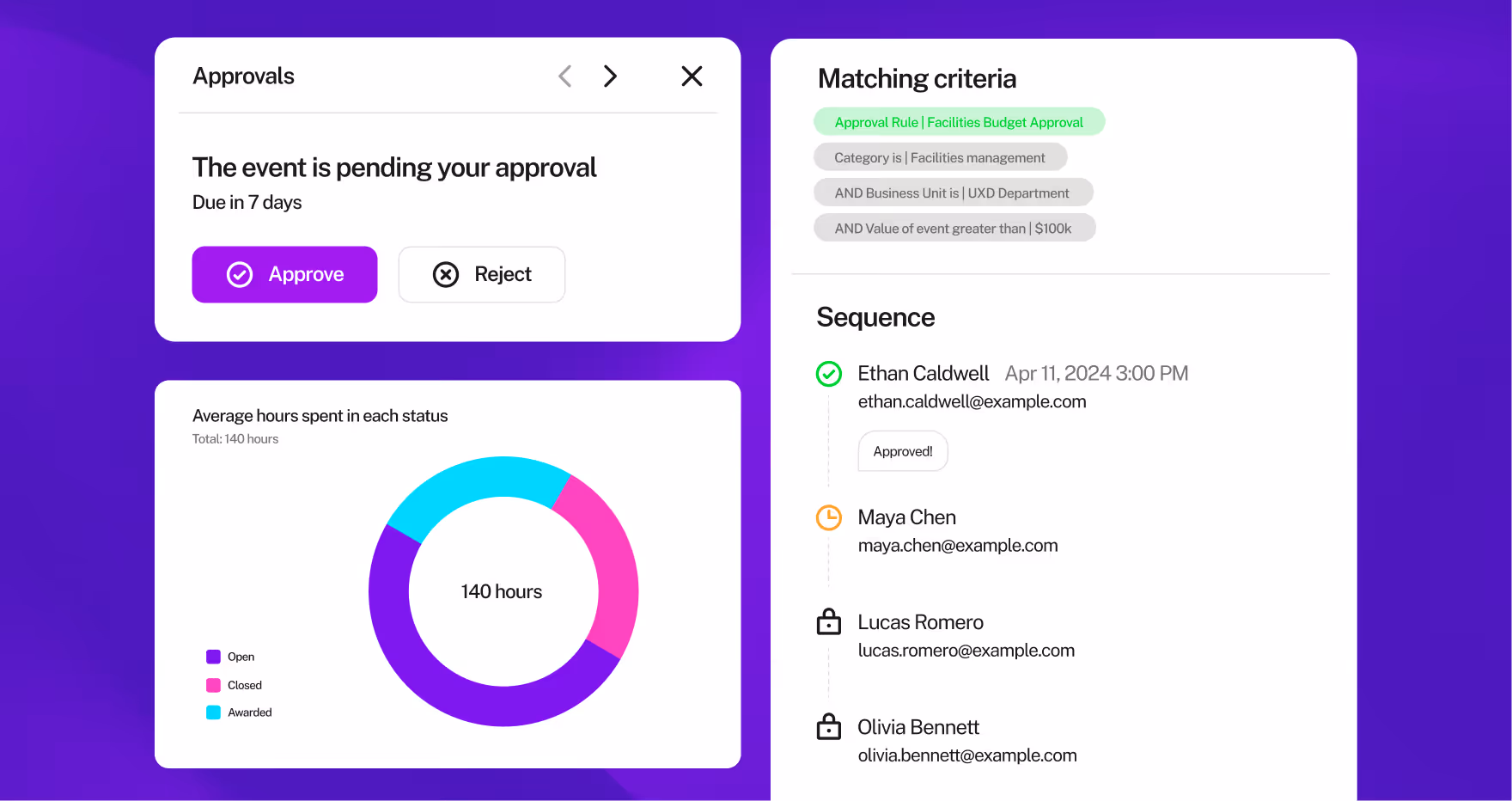 Compress request-to-award cycle time and remove finance blind spots with end-to-end intake coverage, policy-driven routing, and real-time status visibility.