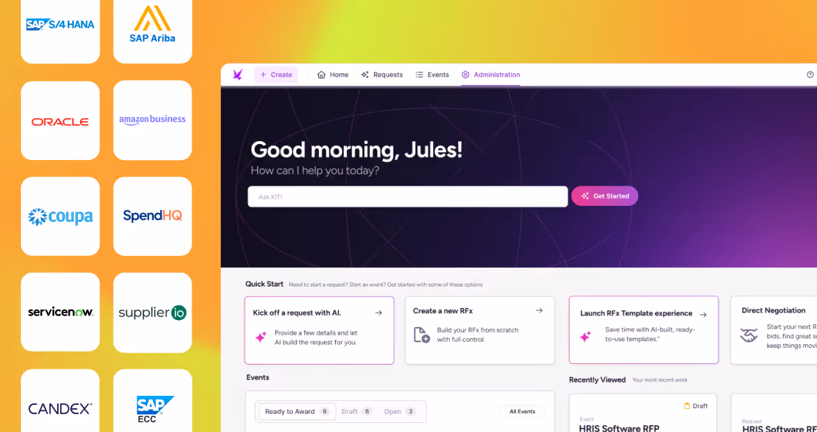 Every sourcing event maintains a complete audit trail, while your systems reflect the final outcomes instantly. From request through award, data flows seamlessly across platforms so procurement, finance, and operations stay in sync.